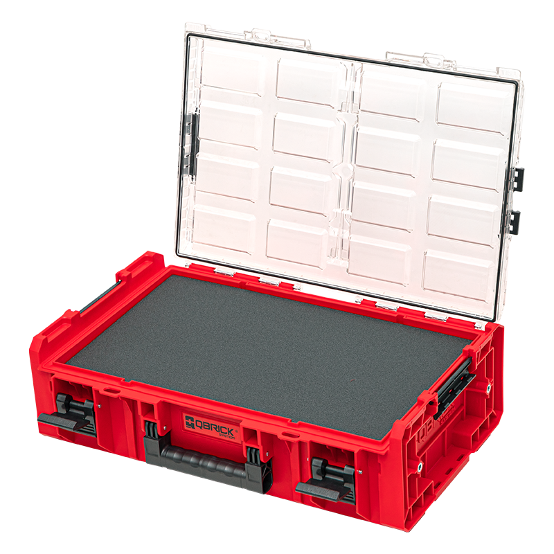 Organizer Qbrick System ONE 2XL 2.0 MFI RED Ultra HD Custom to najwyższy model z serii, który może być łączony ze skrzyniami z linii ONE. Podobnie jak organizer XL stanowi łącznik pomiędzy zestawem skrzyń a mniejszymi modelami organizerów (L, M i M Plus). Wyposażony z wielowarstwowe wkłady piankowe (2x wkład dwuwarstwowy i 2 x wkład trzywarstwowy), które umożliwiają wycięcie dopasowanych otworów pod kształt narzędzi, elektronarzędzi oraz osprzętu, co umożliwi ich bezpieczny transport. Wersja 2.0 produktów z linii ONE to nowa generacja skrzyń narzędziowych i organizerów o wzmocnionej konstrukcji. Dodatkowe przystosowanie korpusów pod montaż insertów gwintowanych w rozmiarze M8 (cztery sztuki w zestawie), daje możliwość dowolnej personalizacji systemu pod potrzeby użytkownika.