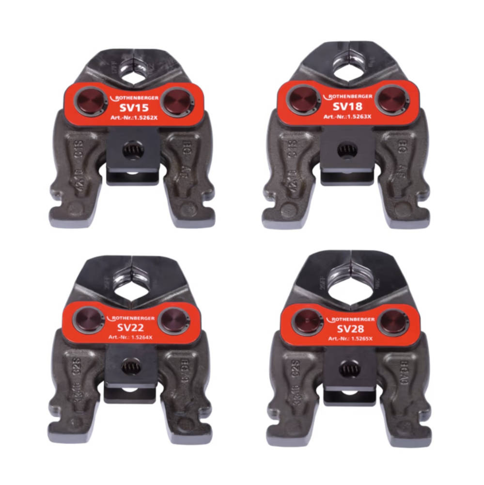 Zestaw szczęk zaciskowych Rothenberger Compact SV 15-18-22-28 mm to wykonany z wysokiej jakości materiału zestaw umożliwiający sprawne zaprasowywanie przyłączek z metalu i tworzyw sztucznych. Dzięki częściowemu hartowaniu laserowemu gwarantują większe bezpieczeństwo i znaczną precyzję użytkowania. Szczęki dzięki odpowiedniemu wykonaniu cechują się długim okresem eksploatacji. Doskonale sprawdzą się w połączeniu z zaciskarkami o nacisku osiowym rzędu 19 kN.