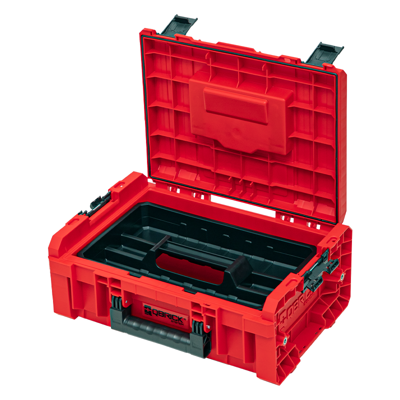 Skrzynia narzędziowa Qbrick System PRO Technician Case 2.0 RED Ultra HD Custom to średniej wielkości, modułowa skrzynka wykonana z z ultra-wytrzymałego tworzywa, która cechuje nadzwyczajna odporność na uszkodzenia mechaniczne. Umieszczona wewnątrz taca z dwoma przegrodami zwiększa możliwości organizacyjne. Pokrywa z wbudowaną uszczelką zapewnia wysoką odporność na wnikanie wody oraz pyłu. Rozmiar oraz modułowy charakter Technician Case RED Ultra HD czyni z niej idealną skrzynkę do przechowywania i transportu zróżnicowanych elektronarzędzi.