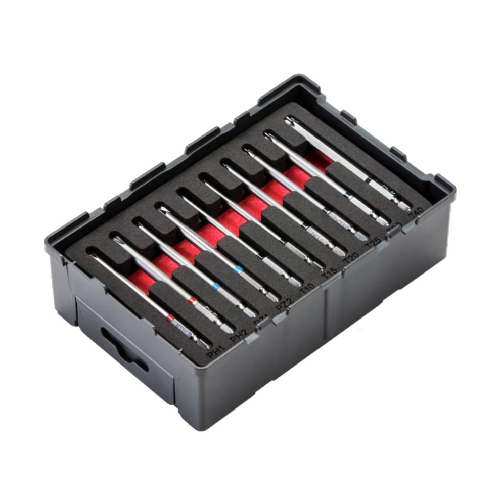 Zestaw bitów Rothenberger 1/4'' 90 mm 10 el. 1000002182 to 10-częściowy zestaw oznaczonych kolorystycznie bitów pierścieniowych o Ø 90 mm 1/4''. Umożliwia na sprawne wkręcanie i wykręcanie śrub krzyżakowych, Pozidriv oraz Torx. Praktyczny organizer ROBOX może być wykorzystywany do przechowywania narzędzi, ułatwiając tym samym ich przenoszenie.