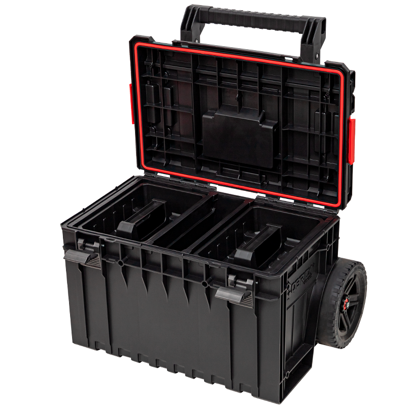 Zestaw skrzyń narzędziowych QBRICK SYSTEM ONE Cart Vario Set 2.0 składa się z trzech pojemnych skrzyń z pokrywą typu VARIO. Charakteryzuje się ona dodatkowymi konektorami, które umożliwiają łączenie ze skrzyniami z serii ONE oraz PRO. Dolny pojemnik wyposażony jest w duże, solidne koła oraz teleskopową rękojeść, które ułatwiają transport skrzyni pełnych narzędzi. Umieszczona uszczelka w pokrywach kontenerów zapewnia poziom ochrony IP54 przed wnikaniem wody oraz pyłu do wnętrza. Możliwości organizacyjne wewnątrz skrzyń zapewniają taca oraz przegrody umieszczone w ich wnętrzach.