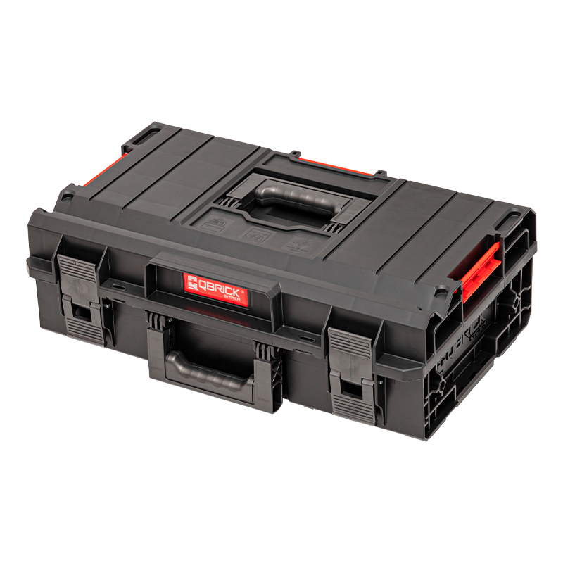 Zestaw skrzyń narzędziowych QBRICK SYSTEM ONE Cart Basic Set 2.0 to zestaw trzech skrzyń narzędziowych, który umożliwi wygodne przechowywanie elektronarzędzi oraz narzędzi ręcznych. Dolna ze skrzyń wyposażona została w duże koła osadzone na metalowej osi oraz teleskopową rękojeść, co zapewnia wygodny transport pełnych kontenerów. Środkowa skrzynia wyposażona w dodatkowe przegrody wewnątrz, które mogą pełnić formę nosidełka dla mniejszych narzędzi, jak np. śrubokręty i wkrętaki. Górna skrzynia wyposażona w sześć kubełków z dodatkowymi przegrodami, co pozwala na zwiększenie możliwości organizacyjnych. Pokrywy wszystkich skrzyń wyposażone zostały w elastyczną uszczelkę, która zapobiega dostawaniu się wody i kurzu do wnętrza pojemników, dzięki czemu przechowywane narzędzia są w pełni bezpieczne.