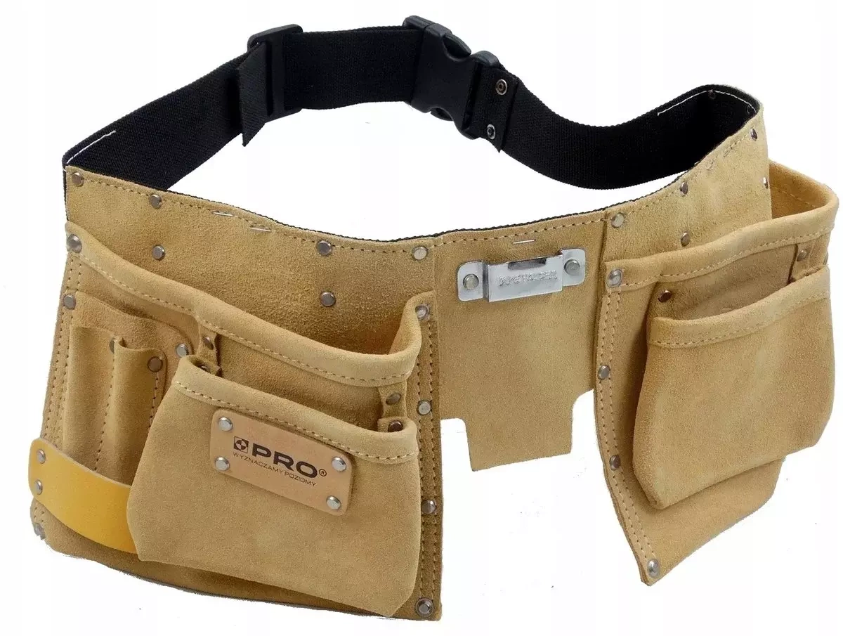 Pas narzędziowy PRO 3-01-13-OR-050 wykonany został z wysokiej jakości skóry zamszowej i dodatkowo wzmacniany nitami na łączeniach. Pas wyposażony jest w dwie duże i dwie średniej wielkości kieszenie na narzędzia oraz sześć mniejszych kieszeni na wkrętaki i ołówki. Zakres obwodu w okół pasa wynosi 80 - 120 centymetrów.