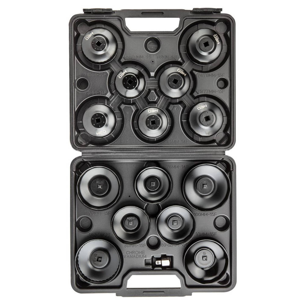 Klucze nasadowe do filtrów oleju NEO Tools zestaw 16szt. 11-243 to doskonały wybór do odkręcania metalowych filtrów oleju w samochodach. Świetnie zatem sprawdzi się w profesjonalnych warsztatach czy serwisach samochodowych. Poza kluczami o konstrukcji kielichowej zestaw obejmuje także redukcję w zakresie 3/8'' - 1/2''. Wszystkie elementy zamknięto w praktycznej walizce. Dzięki podpisanym miejscom bardzo łatwo o identyfikacje wszystkich elementów i utrzymanie wśród nich porządku.
