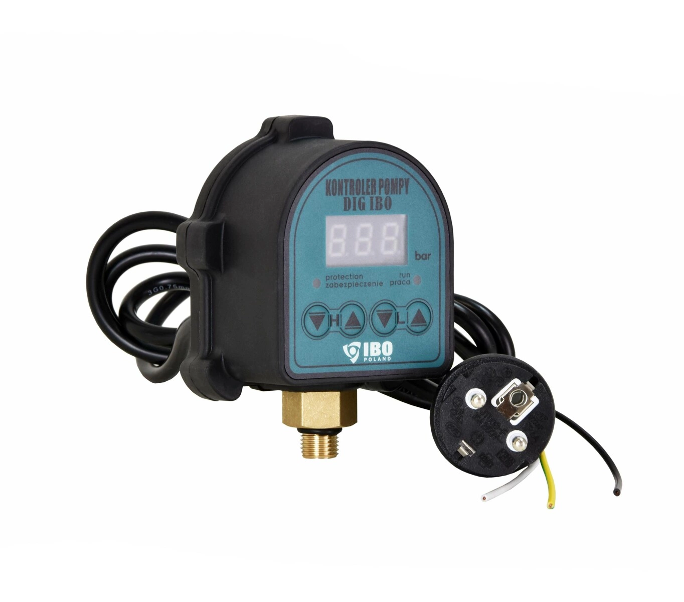 Wyłącznik ciśnieniowy IBO DIG-IBO 001789 to elektroniczny kontroler pompy, który funkcjonuje jako wyłącznik ciśnieniowy. Jest wyposażony w zaawansowany zestaw zabezpieczeń. Jego elektroniczny wyświetlacz ułatwia prostą konfigurację, eliminując powszechną trudność związaną z ustawianiem klasycznych wyłączników ciśnieniowych. Przyłącze sterownika pasuje do rur gwintowanych 1/4". Umożliwia pracę z maksymalną temperaturą cieczy 80 °C.