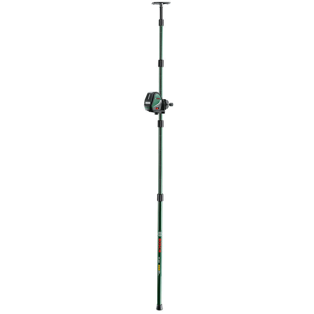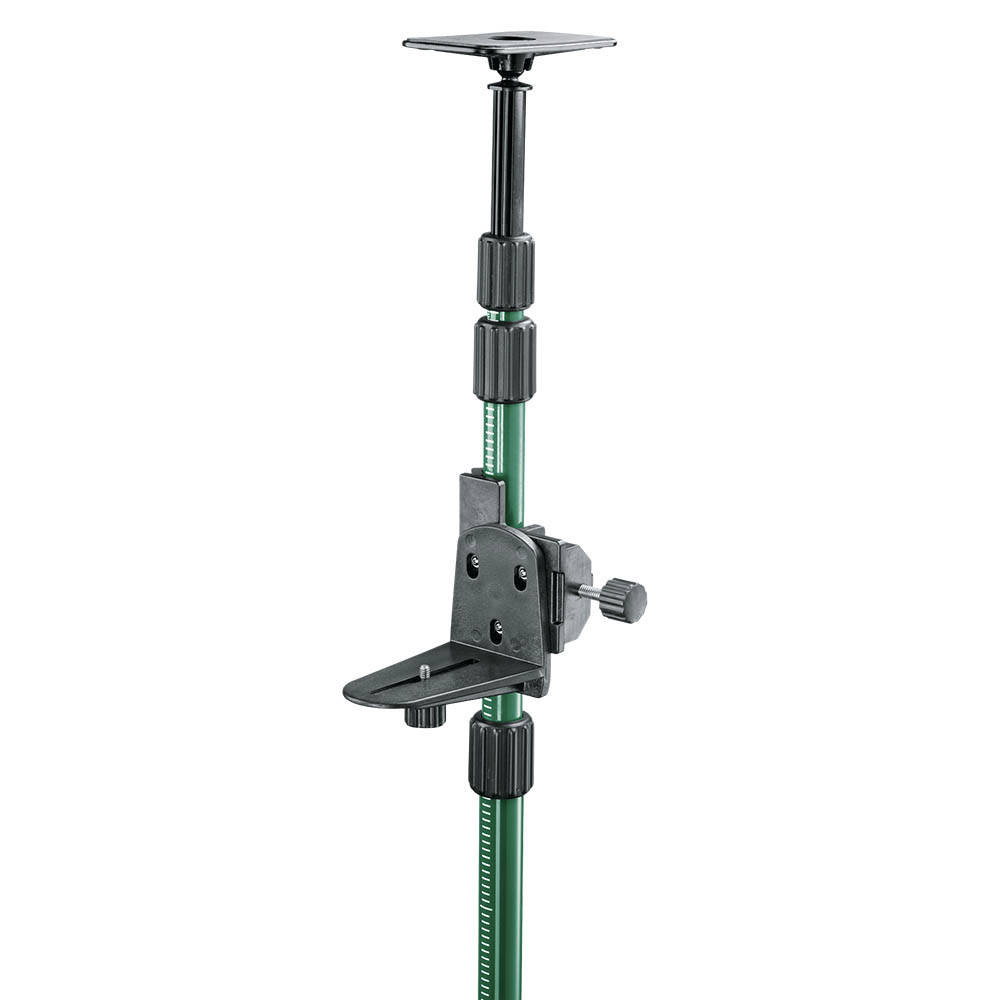 Drążek teleskopowy tyczka rozporowa Bosch TP 320 to drążek rozporowy, który z powodzeniem można wykorzystać do pomocy przy wieszaniu płaskich plafonów sufitowych, płyt gipsowo kartonowych, tymczasowego zawieszenia folii malarskiej w celu zabezpieczenia części pomieszczenia i wiele innych. Posiada trzy teleskopowe elementy z blokadą na gwincie, które ułatwiają jego rozstawienie. Posiada także amortyzowaną płytę sufitową, dzięki czemu możliwy jest swobodny montaż pod dowolnym kątem. Dodatkowo wyposażony został w uchwyt z gwintem 1/4", który może być wykorzystany do powiedzenia drobnego sprzętu fotograficznego, kamer, dalmierz etc.