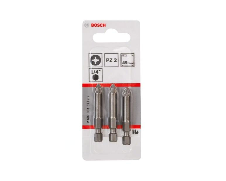 Zestaw 3 nieudarowych bitów Bosch 2607001577 typu PZ2 to uniwersalne końcówki przeznaczone do szerokiego zakresu prac montażowych. Wykonane ze zmodyfikowanej stali S2 i poddane zoptymalizowanej obróbce cieplnej, charakteryzują się bardzo wysoką twardością i trwałością. Stożkowa strefa skrętna skutecznie pochłania szczytowe wartości momentu obrotowego, co zwiększa bezpieczeństwo pracy i wydłuża żywotność bitów. Sześciokątny trzpień umożliwia mocne mocowanie w uchwytach trójszczękowych oraz wewnętrznych uchwytach sześciokątnych 1/4", zapewniając maksymalne przenoszenie momentu obrotowego.