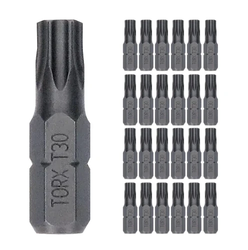 Bit ExH T30 25 mm, 25 szt. Bosch 2607002801 wykonany został ze stali modyfikowanej S2 w zoptymalizowanym procesie obróbki cieplnej, która zapewnia trwałość i wydajność. Zawężona strefa skręcania łatwo radzi sobie z wartościami szczytowymi momentu obrotowego. Uchwyt sześciokątny zapewnia maksymalne przenoszenie mocy w standardowych wiertarkach trójszczękowych.