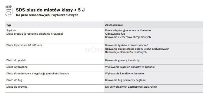 - Zestaw zawiera najpotrzebniejsze rozmiary wierteł sds do betonu oraz 5 dłut o różnych wielkościach i długościah.