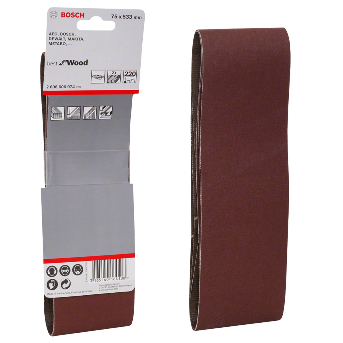 - 3x pas ścierny do szlifierek taśmowych Bosch X440 2608606074 G220