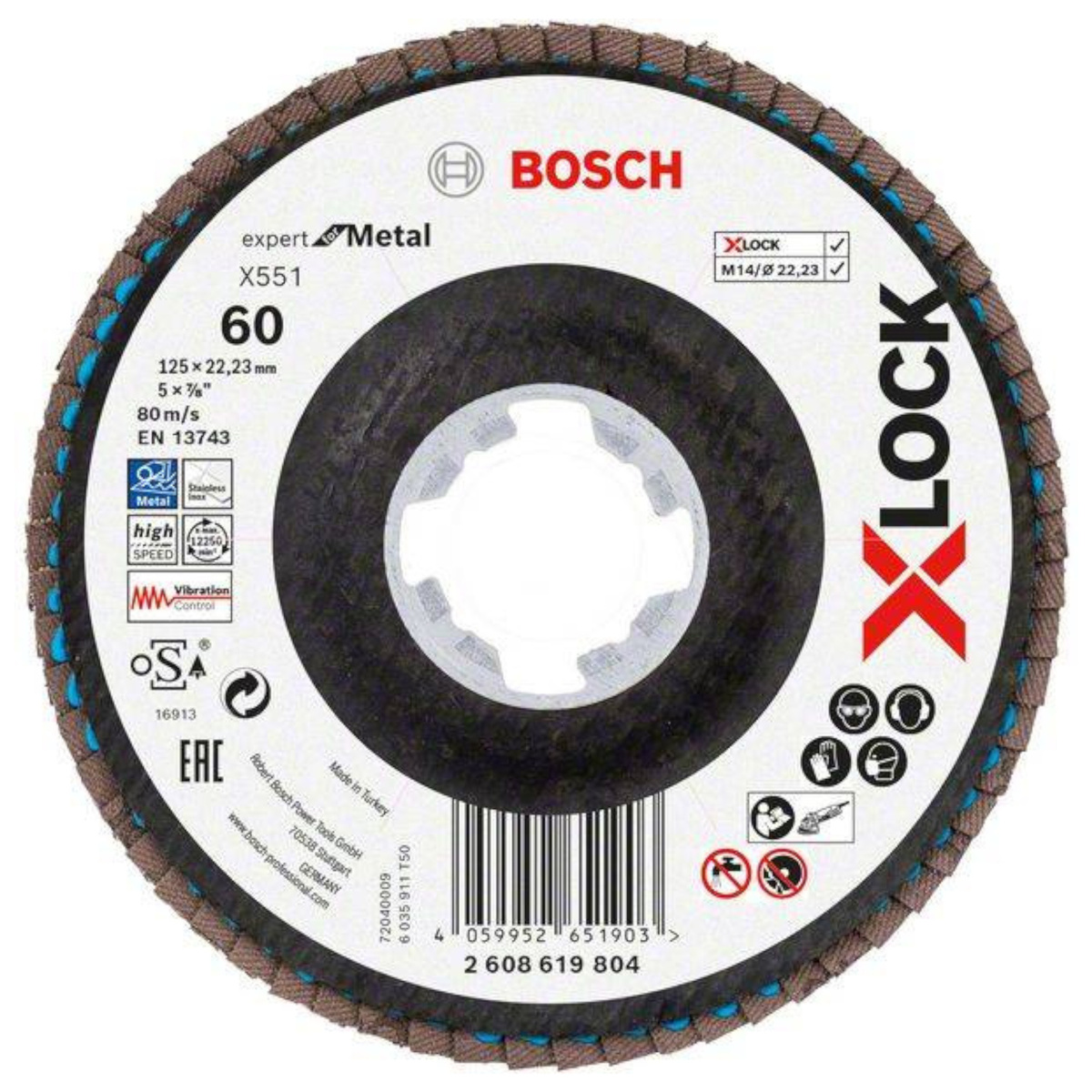 - Kompatybilność z szlifierkami wyposażonymi w system X-LOCK oraz standardowe mocowania Ø 22,23 mm.