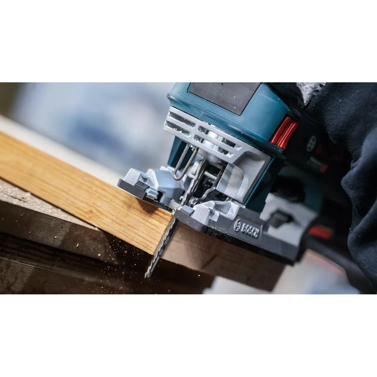 Brzeszczot do wyrzynarek Bosch (2608633A42) 100 szt. to niezawodny osprzęt przeznaczony do precyzyjnych i szybkich cięć w miękkim drewnie oraz w materiałach drewnopochodnych o grubości od 5 do 50 mm. Model ten posiada gruby korpus i szlifowane, rozwarte zęby, co przekłada się na wyjątkową stabilność oraz dokładność podczas pracy, nawet podczas cięć pod kątem. Model Bosch PRO Wood Precise T144DP wykonany ze stali wysokowęglowej (HCS) gwarantuje wysoką wytrzymałość oraz odporność na wyginanie, co czyni go doskonałym wyborem do prac stolarskich, takich jak obróbka płyt wiórowych, sklejki czy blatów kuchennych. Brzeszczot pasuje do wszystkich wyrzynarek wyposażonych w uchwyt typu T, co czyni go wszechstronnym i praktycznym rozwiązaniem dla profesjonalistów i majsterkowiczów.
