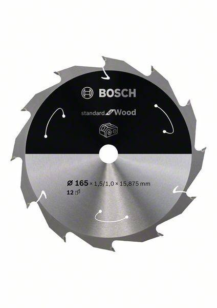Tarcza do piły tarczowej bezprzewodowej Standard for Wood 165 × 1,5 / 1 × 15,875 T12 Bosch 2608837680