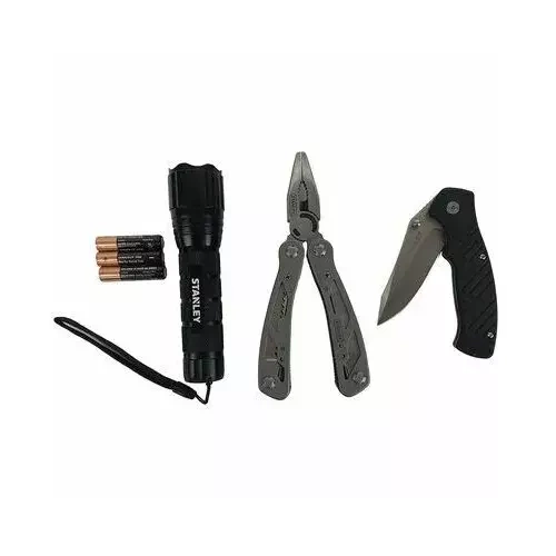 Zestaw survivalowy Stanley STHT81502-0 wykonany został z wysokiej jakości materiałów, tj. aluminium i stal nierdzewna i składa się z urządzenia wielofunkcyjnego, mocnej latarki o mocy 150 lm oraz składanego scyzoryka. Sprawdzi się podczas kempingów, biwakowania, wypadów na ryby, a nawet podczas przydomowego majsterkowania. 12 narzędzi w jednym znajdzie swoje zastosowanie w wielu sytuacjach. Latarka pozwoli na oświecenie drogi oraz obszaru pracy.