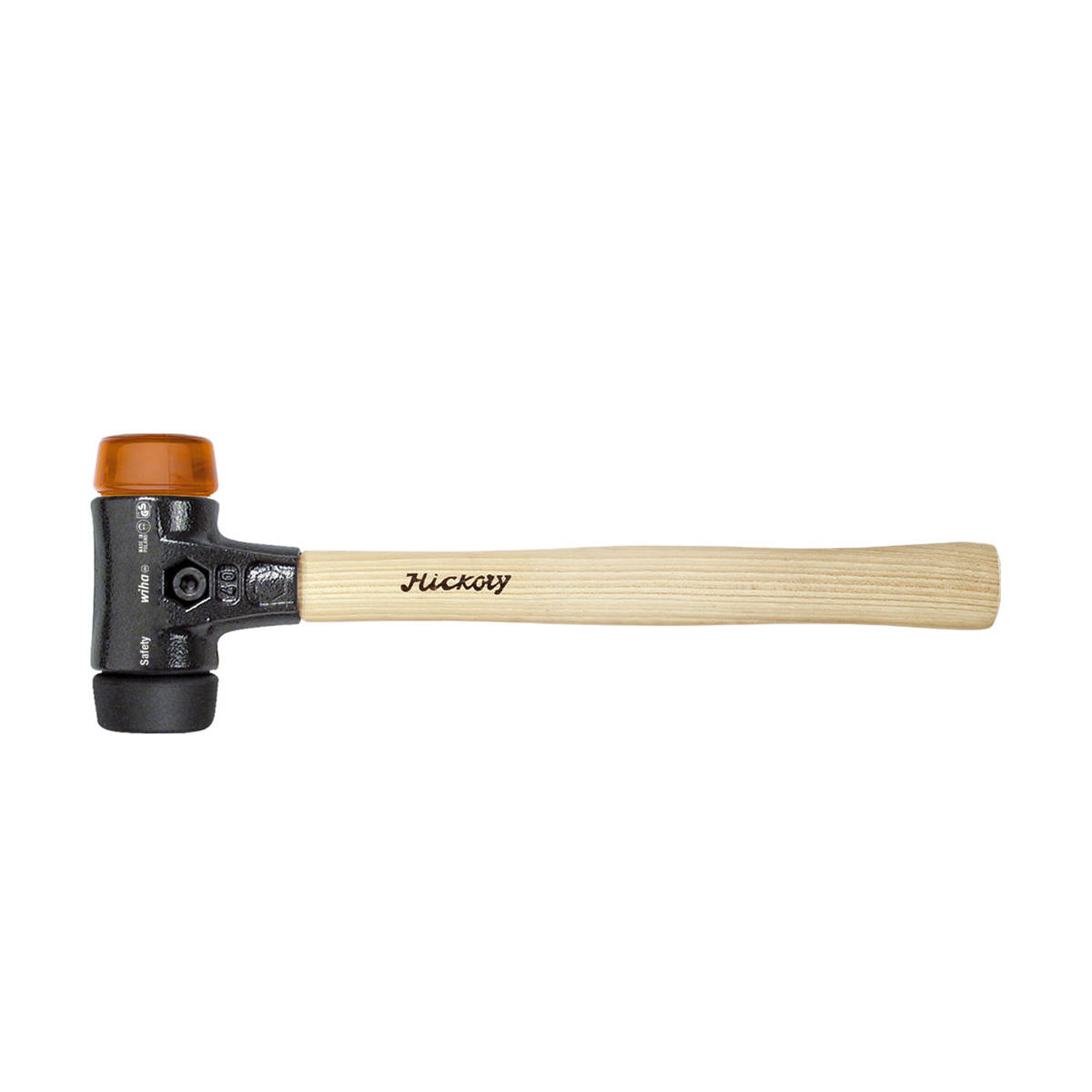Młotek z miękkim obuchem Safety średnio miękki/twardy Wiha 26611 posiada obuch składający się z dwóch różnych końcówek, zapewniających większe możliwości zastosowania narzędzia. Czarna końcówka/średnio miękka sprawdzi się do wykonywania np. do prac brukarskich, układania glazury, suchej zabudowy, natomiast pomarańczowa końcówka/ twarda: np. do prac montażowych i demontażowych, prac budowlanych, prac warsztatowych. Tak zbudowany młotek zapewnia łatwiejszą pracę oraz optymalną moc uderzenia przy mniejszym nakładzie siły. Ergonomiczny trzonek z drewna hikory i końcówki młotka dostępne oddzielnie jako części zapasowe.