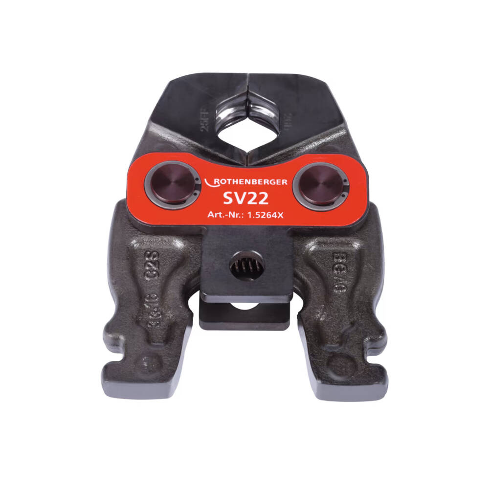 Szczęka zaciskowa Rothenberger SV 22mm 15264X to niezwykle dobry wybór do systemowego zaprasowywania złączek wykonanych z metalu i tworzywa sztucznego. Szczęki charakteryzują się wydłużoną żywotnością za sprawą technologii DURA LAZR TEC i częściowego hartowania laserowego, które gwarantują możliwość bezpiecznego i precyzyjnego zaprasowywania. W rezultacie szczęki Rothenberger 15264X cechują się niezwykle niskim zużyciem i oferują więcej cykli zaprasowywania w zestawieniu z poprzednią wersją. Użycie odpornej stali sprawia, że szczęki doskonale sprawdzą się do zaciskarek osiągających stałą siłę zacisku rzędu 19 kN. Wykorzystanie ochrony antykorozyjnej pozwoliło dodatkowo wydłużyć okres ich eksploatacji.