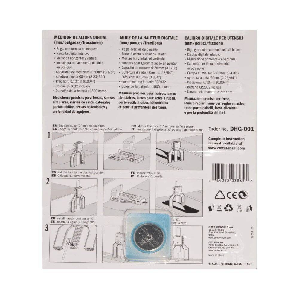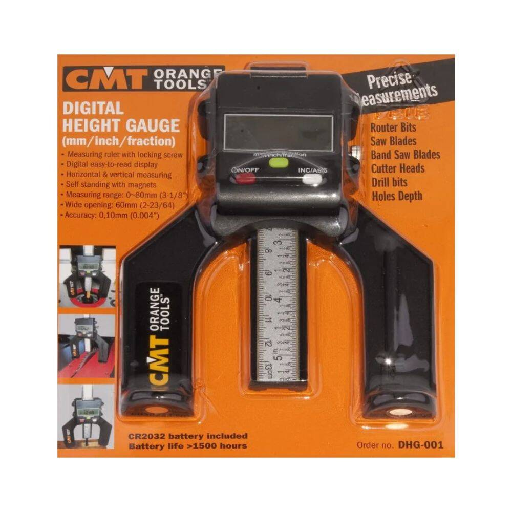 Cyfrowy miernik wysokości CMT DHG-001 to profesjonalne urządzenie pozwalające na wykonanie bardzo dokładnego pomiaru pionowego jak i poziomego. Dzięki dokładnemu wykonaniu, ramiona miernika są bardzo stabilne, co pozwala na dokonanie precyzyjnego pomiaru bezpośrednio na maszynach lub obrabianym materiale. Dodatkowo urządzenie posiada wbudowaną specjalną śrubę, która pozwala na blokowanie skali wyrażoną w milimetrach i calach. Stopki miernika zostały wyposażone w magnesy ułatwiającą ogólną obsługę urządzenia.