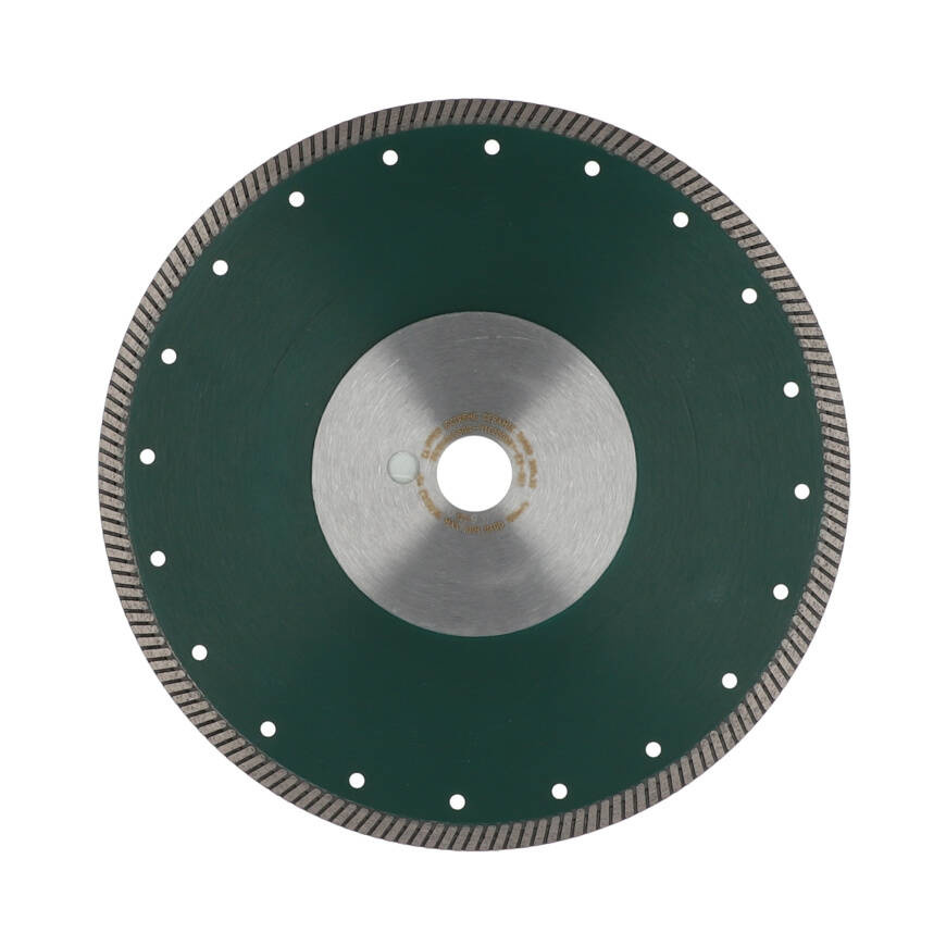 Tarcza diamentowa Norton Clipper Extreme Ceramic Turbo H10,5 300 x 30 mm 70184645566 to profesjonalny osprzęt do cięcia materiałów o dużej twardości, między innymi płytek ceramicznych, kamienia czy szkła. Tarcza została zaprojektowana do użytku z przecinarkami do glazury i doskonale spisze się podczas remontów i prac glazurniczych. Ciągłe obrzeże o wysokości 10,5 mm pozwala na szybkie i dokładne cięcie, a diamentowy nasyp wysokiej jakości przekłada się na dużą wydajność osprzętu i skuteczne wgryzanie się w materiał. Produkt jest przeznaczony do pracy na sucho.