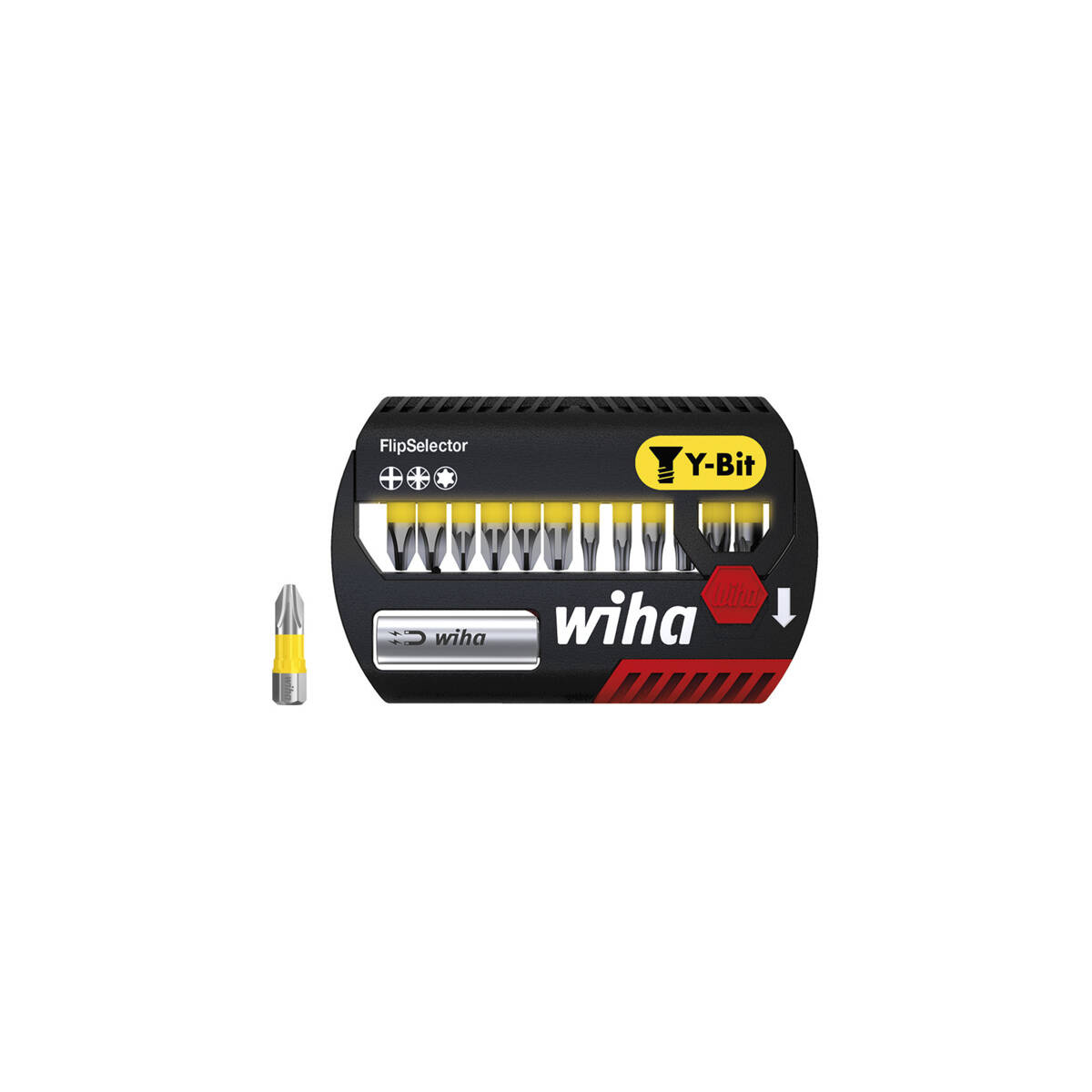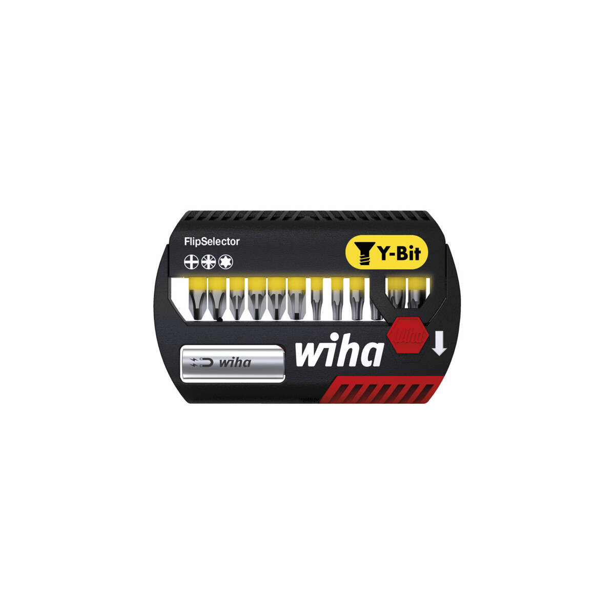 Zestaw bitów FlipSelector, bit Y Wiha 41827 składa się z 12 bitów typu Y, o różnych kształtach główki oraz magnetycznej przedłużki zapewniającej pewne osadzenie końcówek. Zastosowana technologia skrętna, sprawia, że bit nadaje się również do wkrętarek udarowych, zapewniając 120x dłuższą żywotność w porównaniu do bitów standardowych firmy Wiha. Dzięki pokryciu lakierem luminescencyjnym można szybko i łatwo odnajdywać kolorowe bity nawet w ciemności przy użyciu lampy UV. Bity przeznaczone są do pracy ze śrubami z łbem Y-kształtnym, o kącie różnym od 90°.