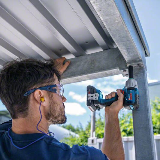 Klucz udarowy GDS 18V-450 PC doskonale sprawdzi się w warsztatach i zakładach ślusarskich. Jest również idealny do zastosowań w montażu przemysłowym, konstrukcjach oraz pracach konserwacyjnych pojazdów, gdzie używa się metalowych śrub i nakrętek o rozmiarze M10-M20. Jest kompatybilny z całym asortymentem akumulatorów i ładowarek Bosch Professional 18V (System Professional 18V). W skład zestawu wchodzą 2 akumulatory ProCORE 18V 4.0 Ah wraz z szybką ładowarką