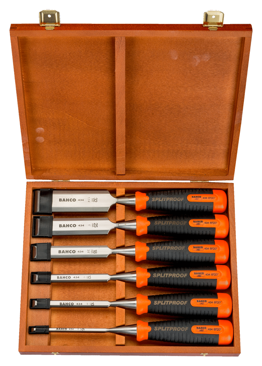 Zestaw dłut Bahco 434-S6-EUR składa się z sześciu narzędzi w rozmiarach 6, 10, 12, 18, 25 oraz 32 mm wykonanych z wysokiej jakości, hartowanej stali, zapewniającej długą żywotność oraz eliminującą przedwczesne tępienie się narzędzia. Polerowane ostrze odporne jest na zabrudzenia oraz zabezpieczone antykorozyjnie. Dwuskładnikowa, ergonomiczna rękojeść pozwala na pobijanie młotkiem, bez przenoszenia nadmiernych drgań na użytkownika. Honowane długa są gotowe do użycia od razu po otwarciu opakowania.