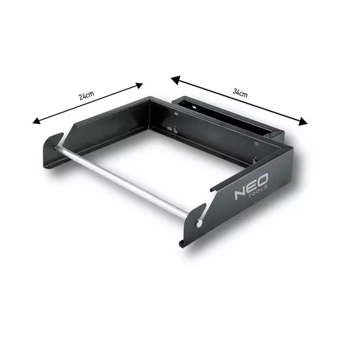 Uchwyt na papier Neo Tools 84-271 jest przeznaczony dla dedykowanych szafek warsztatowych i wózków narzędziowych producenta. Akcesorium wykonane jest z solidnej stali o średnicy 1 mm. Oferowany w zestawie z czterema śrubami oraz prętem do papieru. Charakteryzuje się wymiarami korpusu – 340 x 260 x 65 mm oraz samego uchwytu – 310 x 210 x 65 mm.