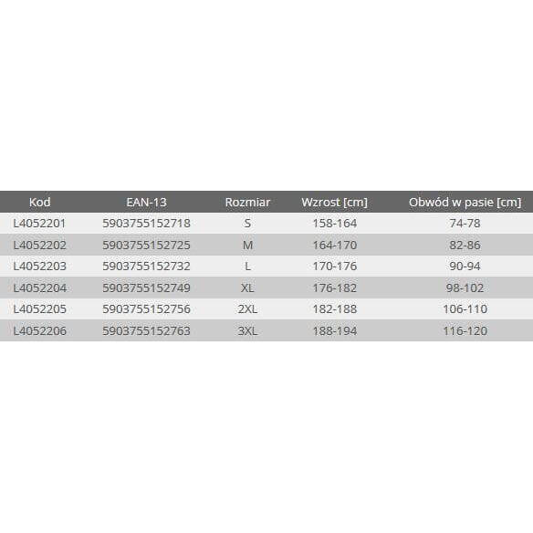 - Spodnie są sklasyfikowane w pierwszej kategorii środków ochrony indywidualnej, posiadają deklarację CE oraz są zgodne z normą EN ISO 13688.