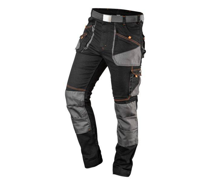 Spodnie robocze NEO 81-238-XXL to spodnie robocze HD Slim, stworzone przez ekspertów od odzieży marki NEO TOOLS, łączą wygodę i modny wygląd z maksymalną funkcjonalnością i trwałością. Dzięki dodatkowi elastanu w ilości trzech procent, spodnie HD Slim gwarantują swobodę ruchów i minimalizują uczucie uwierania podczas noszenia. Nogawki można łatwo wydłużyć, a bawełniany pasek z metalową klamrą pozwala na dostosowanie ich do różnych sylwetek. Specjalne profilowanie kolan i kieszenie na nakolanniki zwiększają komfort podczas pracy. Wysoką trwałość zapewniają potrójne szwy oraz wzmocnienia z tkaniny Oxford w miejscach narażonych na przetarcia. Tkanina Oxford jest odporna na czynniki atmosferyczne i uszkodzenia mechaniczne, dzięki pokryciu poliuretanem z jednej strony.
