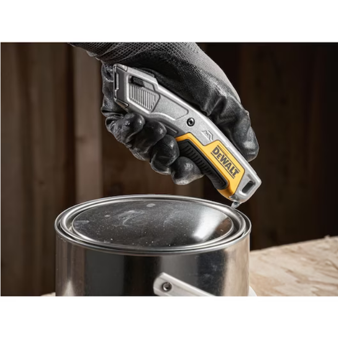 Nóż uniwersalny z ostrzem chowanym Dewalt DWHT10054-0 przeznaczony jest do pracy z ostrzami trapezowymi. Jego wzmocniona konstrukcja czubka ostrza zapewnia znacznie większą odporność na upadki, niż tradycyjne noże uniwersalne. Dedykowana końcówka „demo-assist” jest idealna do podważania oraz skrobania różnych elementów i powierzchni. Dzięki szybciej i beznarzędziowej wymianie ostrzy użytkownik może niemalże natychmiast skorzystać z nowego, ostrego ostrza trapezowego, które może być schowane w sytuacji, kiedy nie korzystamy z nożyka.