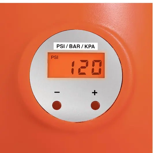 - Prosty w obsłudze selektor wyboru i funkcja automatycznego wyłączenia urządzenia pozwalają na dokładne ustawienie wybranej wartości ciśnienia w bar/psi bez ryzyka nadmiernego napompowania lub niedopompowania