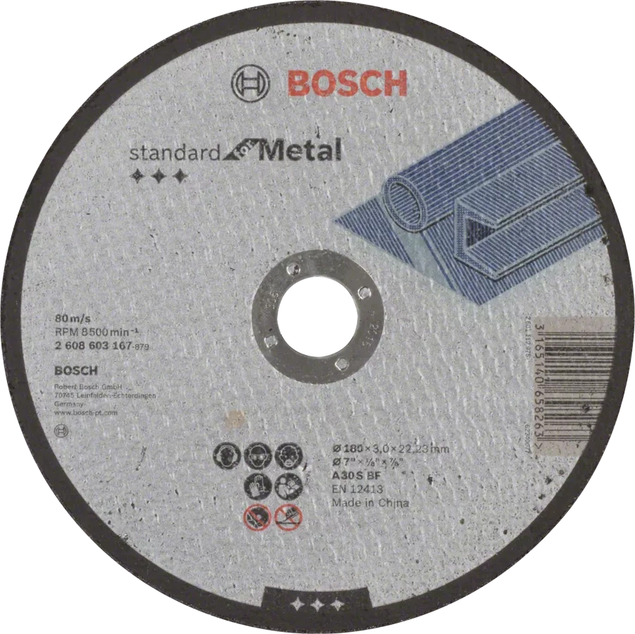 Tarcza tnąca do metalu 180mm do cięcia prostego BOSCH 2608619769, zapewnia niezawodne cięcie do metalu, osprzęt jest wykonany z tlenku glinu, dzięki czemu idealnie nadaje się do ogólnego użytku z metalem. Tarcza spełnia najwyższe wymogi najwyższe wymogi bezpieczeństwa, takie jak norma EN 12413. Posiada otwór o średnicy 22,23 mm, co umożliwia montaż w standardowych szlifierkach kątowych z nakrętką mocującą.