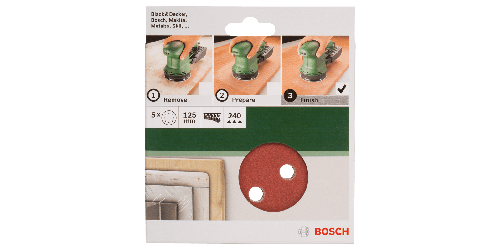 Zestaw 5 szt. papierów ściernych do szlifierki mimośrodowej P240 125 mm Bosch 2609256A27.