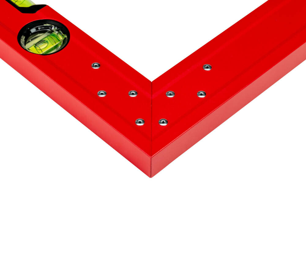 - Wskaźniki poziomu i pionu pozwalające na połączenie funkcjonalności kątownicy z poziomnicą
