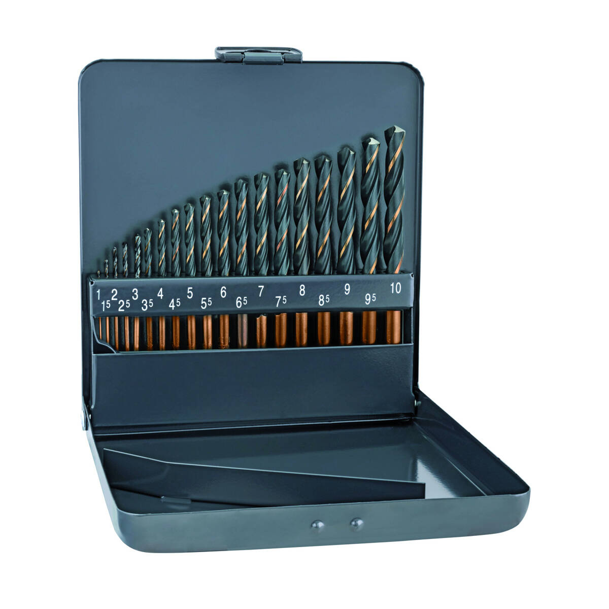 - Rozmiary wierteł: 1.0, 1.5, 2.0, 2.5, 3.0, 3.5, 4.0, 4.5, 5.0, 5.5, 6.0, 6.5, 7.0, 7.5, 8.0, 8.5, 9.0, 9.5, 10.0 mm