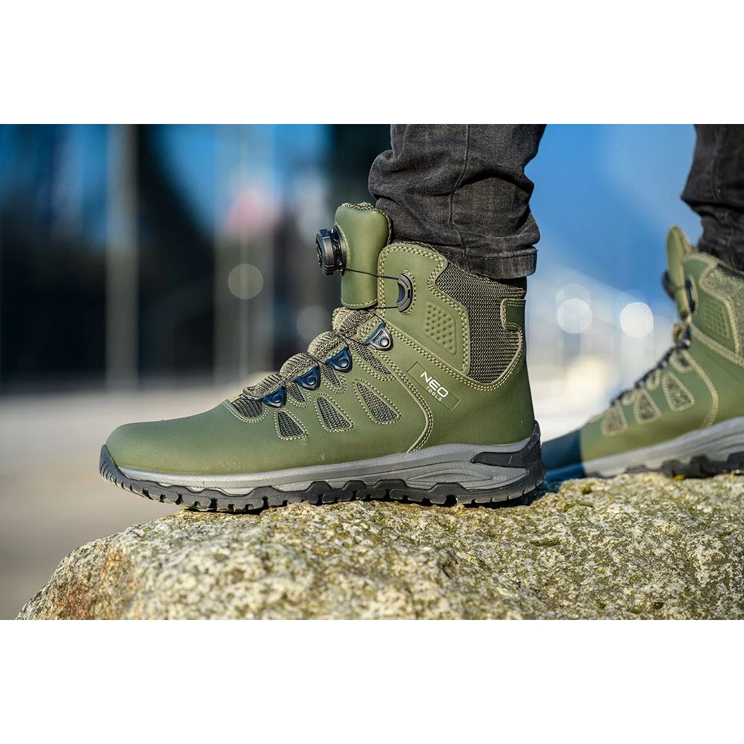 Buty robocze NEO Tools 82-751-45 (rozmiar 45) to profesjonalne obuwie ochronne stworzone z myślą o komforcie i bezpieczeństwie. Wytrzymała podeszwa z mieszanki gumy i poliuretanu gwarantuje doskonałą przyczepność na zróżnicowanych nawierzchniach, wykazuje też odporność na chemikalia i oleje, co czyni model NEO Tools 82-751-45 idealnym wyborem zarówno do pracy, jak i do aktywności na świeżym powietrzu. Zabudowana pięta zwiększa stabilność, a redukujące wstrząsy wkładki z pianki Hi-Poly zapewniają komfort nawet podczas długotrwałego noszenia. Cholewka wykonana z nubuku chroni przed wilgocią i doskonale dopasowuje się do stopy, co przekłada się trwałość i wygodę. Oddychająca wyściółka z siatki wspiera odpowiednią cyrkulację powietrza, redukując ryzyko przegrzania. Buty wyposażono w łatwy w obsłudze system wiązania, obsługiwany za pomocą pokrętła regulującego siłę zacisku żyłki. Produkt jest zgodny z normą bezpieczeństwa EN ISO 20347:2012.