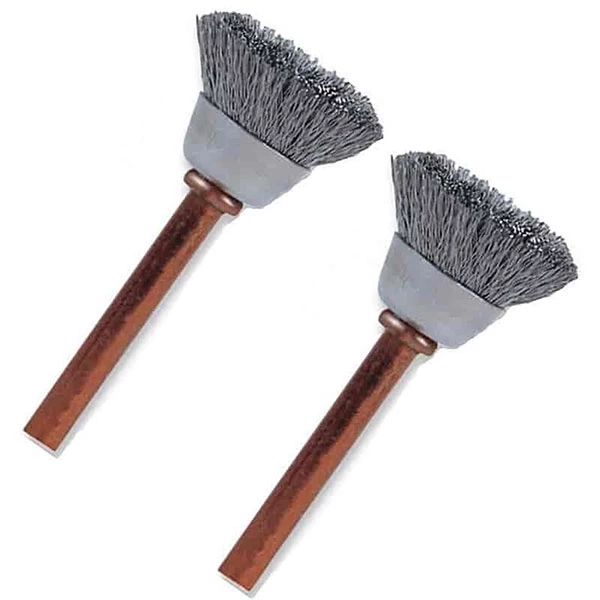 Szczotka ze stali nierdzewnej 13 mm Dremel 26150531JA 2 szt. przeznaczona jest do czyszczenia materiałów odpornych na korodowanie, takich jak stal nierdzewna i srebro za pomocą multi szlifierek marki Dremel. Szczotka ma średnicę 13 milimetrów i mocowana jest za pomocą trzpienia o średnicy 3,2 milimetra. Może być stosowana z maksymalną prędkością obrotową 15000 obrotów na minutę.