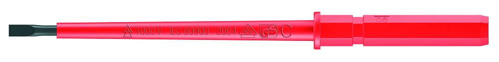 Trzpień wymienny Kraftform Kompakt VDE 60 i 1,0 x 5,5 x 154 mm Wera 05003404001 to izolowany trzpień z płaskim grotem, sprawdzany pod napięciem 10000V, dzięki czemu pozwala na pracę pod napięciem 1000 V. Grot ma wymiary 5,5 x 1,0 mm.