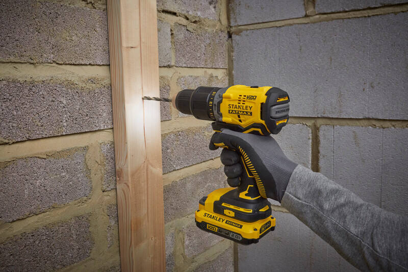 Wiertarko-wkrętarka Stanley Fatmax SFMCD715D2F to zasilana akumulatorowo, bezprzewodowa wiertarko-wkrętarka z udarem, z nowoczesnym silnikiem bezszczotkowym. Stanley Fatmax SFMCD715D2F to dwubiegowa wiertarko-wkrętarka z funkcją pracy z udarem, która oferuje maksymalny moment obrotowy 60 Nm oraz 15 nastawień sprzęgła. Narzędzie nadaje się do pracy w drewnie, betonie, tworzywach sztucznych oraz do wiercenia w stali.