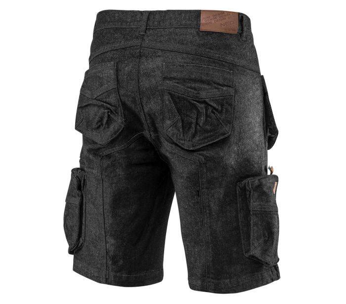 Krótkie spodenki robocze NEO Tools 81-273-XL rozm. XL to spodnie jeansowa o składzie materiałowym 98% bawełny i 2% elastanu. Spodenki charakteryzują się czarnym kolorem i zapewniają dobre dopasowanie oraz wysoki komfort użytkowania. Spodenki wyposażone zostały w 7 kieszeni, w tym jedną zapinaną na zamek oraz dwie zapinane na napy.