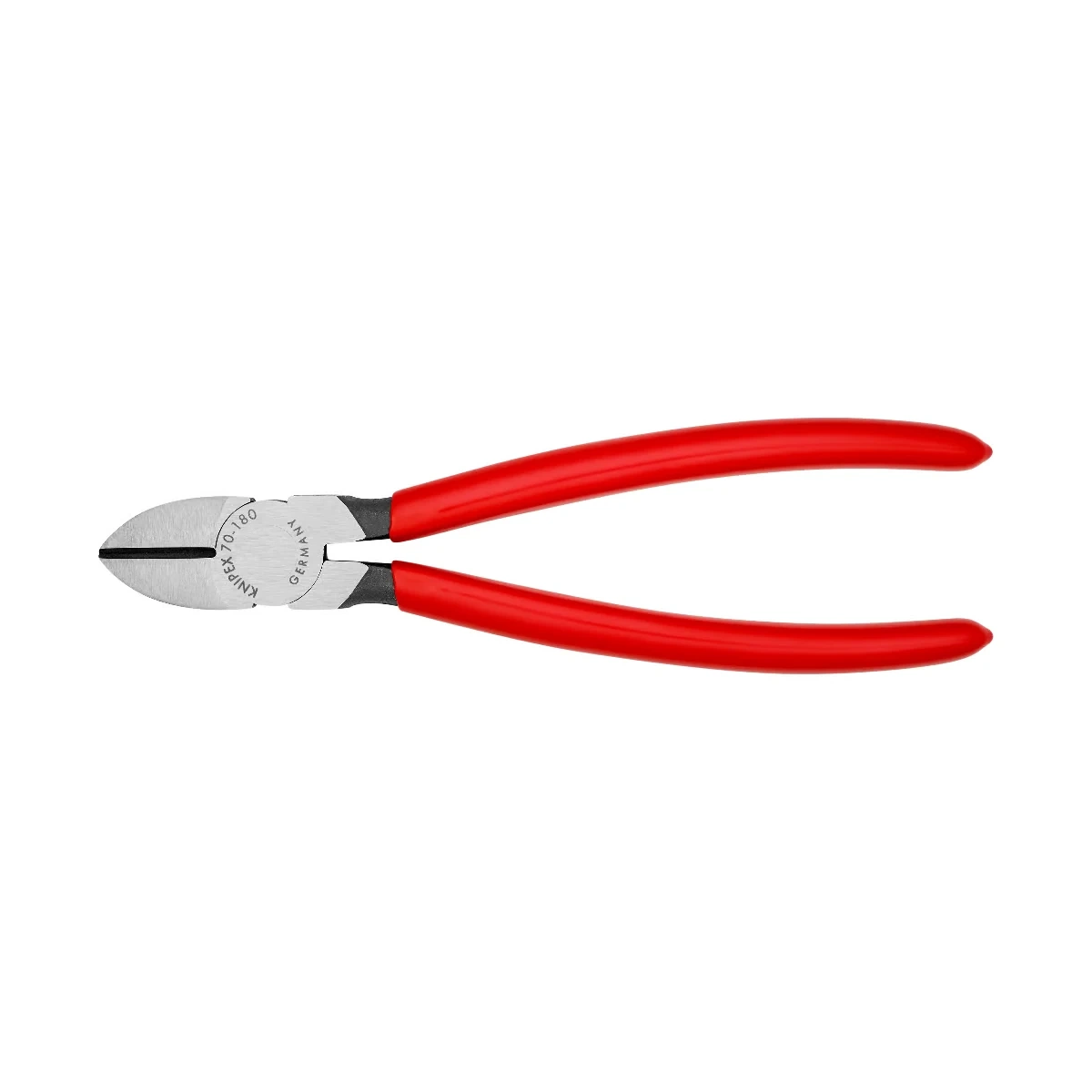 Szczypce boczne 180mm Knipex 70 01 180 przeznaczone są do precyzyjnego cięcia różnych typów drutu. Dzięki smukłej główce możliwa jest praca w trudno dostępnych miejscach, co czyni ten model szczególnie przydatnym w instalacjach elektrycznych, motoryzacji czy serwisach elektronicznych. Ostrza są indukcyjnie hartowane, osiągając twardość ok. 61 HRC, co zapewnia im wyjątkową trwałość i skuteczność cięcia. Szczypce radzą sobie zarówno z miękkim, jak i twardszym drutem, oferując czyste i dokładne cięcie nawet na końcówce ostrzy. Wykonane z wysokiej jakości materiałów i zgodne z normą DIN ISO 5749, stanowią jedno z najczęściej wybieranych narzędzi do zastosowań profesjonalnych.