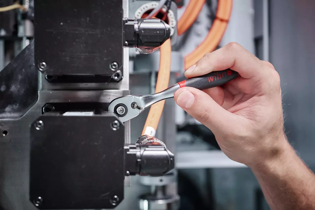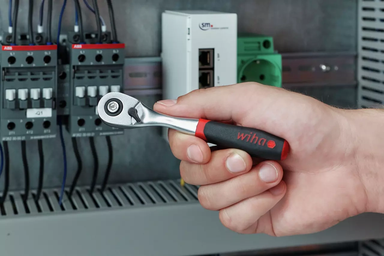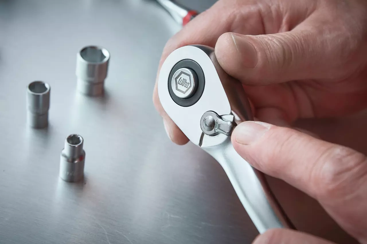 Grzechotka Wiha 1/4" x 135 mm 45626 dzięki drobnemu uzębieniu i antypoślizgowej rękojeści doskonale sprawdzi się w miejscach o ograniczonym dostępie. Wygięty kształt grzechotki zapewnia ochronę palców, a funkcja szybkiego zwalniania gniazd przez przycisk z zabezpieczeniem kulkowym pozwala na szybką i bezpieczną wymianę nasadek. Produkt stworzony z myślą o precyzyjnej pracy w warsztatach mechanicznych oraz przy różnych montażach.