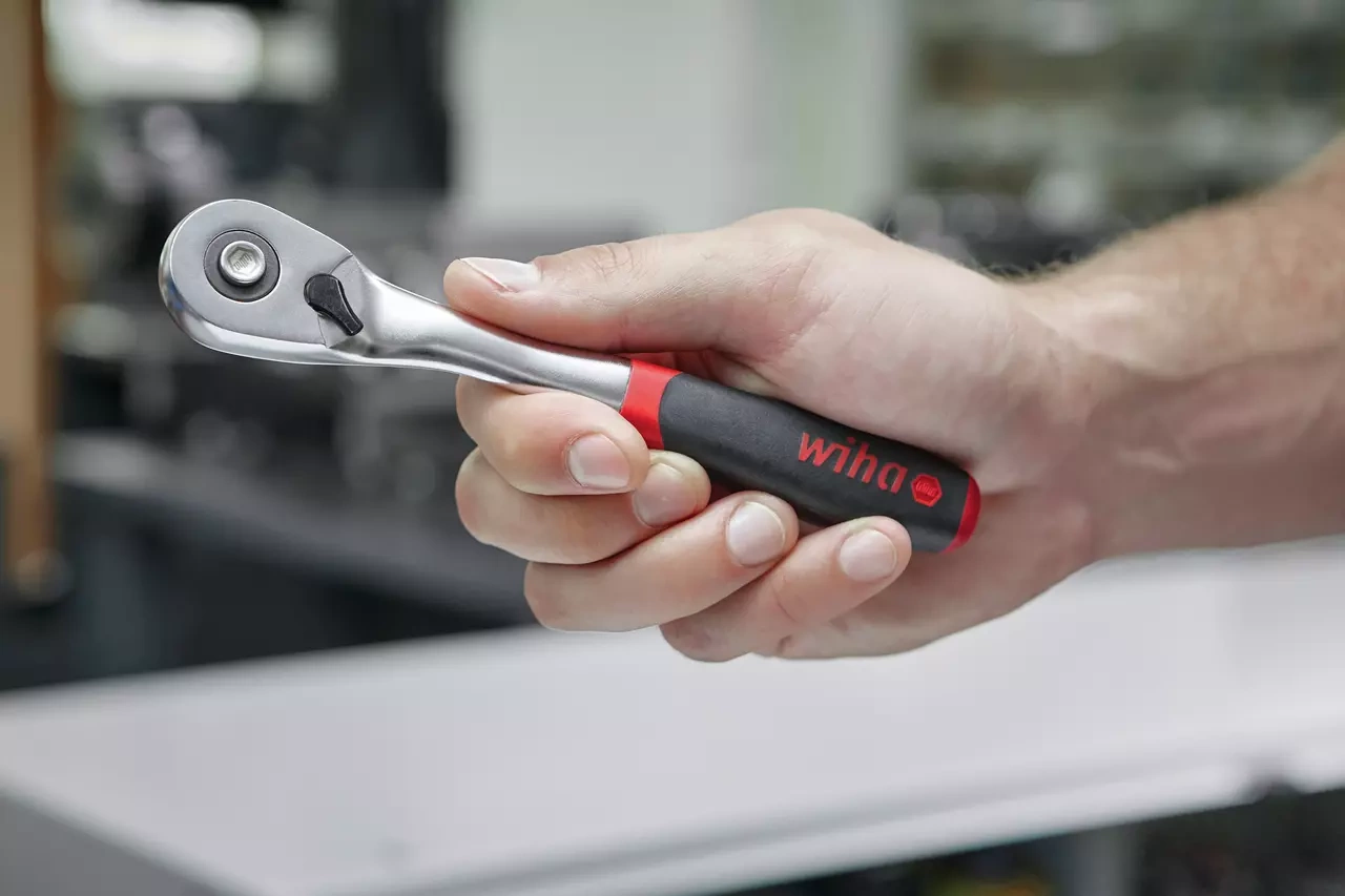 Grzechotka 3/8" x 175 mm Wiha 45625 to wysokiej jakości narzędzie ręczne zaprojektowane z myślą o profesjonalistach i bardziej wymagających użytkownikach. Pozwala na łatwe dokręcanie i odkręcanie śrub oraz nakrętek, nawet w trudnodostępnych miejscach. Dzięki zastosowaniu antypoślizgowego, dwuelementowego uchwytu, praca jest ergonomiczna i wygodna, a wygięty kształt głowicy zapobiega urazom palców i pozwala na przyłożenie większej siły. Mechanizm z 72 zębami oraz kąt powrotu wynoszący zaledwie 5° umożliwiają precyzyjną pracę w wąskich przestrzeniach. Przełącznik kierunku obrotu pozwala na łatwe przejście między dokręcaniem a odkręcaniem. Z kolei zabezpieczenie kulkowe, zwalniane jednym przyciskiem, zapewnia pewne trzymanie nasadek i pozwala na ich szybkie wymienianie.
