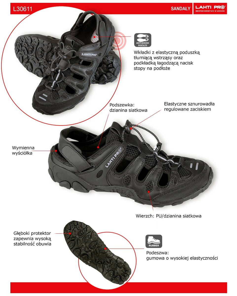 Sandały turystyczne Lahti Pro L3061143 w rozmiarze 43 to idealne obuwie na lato, zapewniające lekkość, przewiewność i wygodę. Model L30611 cechuje się cholewką wykonaną z dzianiny siatkowej oraz poliuretanu (PU), co zapewnia doskonałą wentylację. Wymienna wkładka z elastyczną poduszką tłumiącą wstrząsy oraz podkładką łagodzącą nacisk stopy na podłoże zapewnia wyjątkowy komfort. Podeszwa wykonana z gumy charakteryzuje się wysoką elastycznością i głębokim protektorem, który gwarantuje stabilność obuwia na różnorodnym terenie. Sandały Lahti Pro L3061143 są doskonałym wyborem na letnie wypady na łono natury, zapewniając wygodę i stabilność w każdych warunkach.