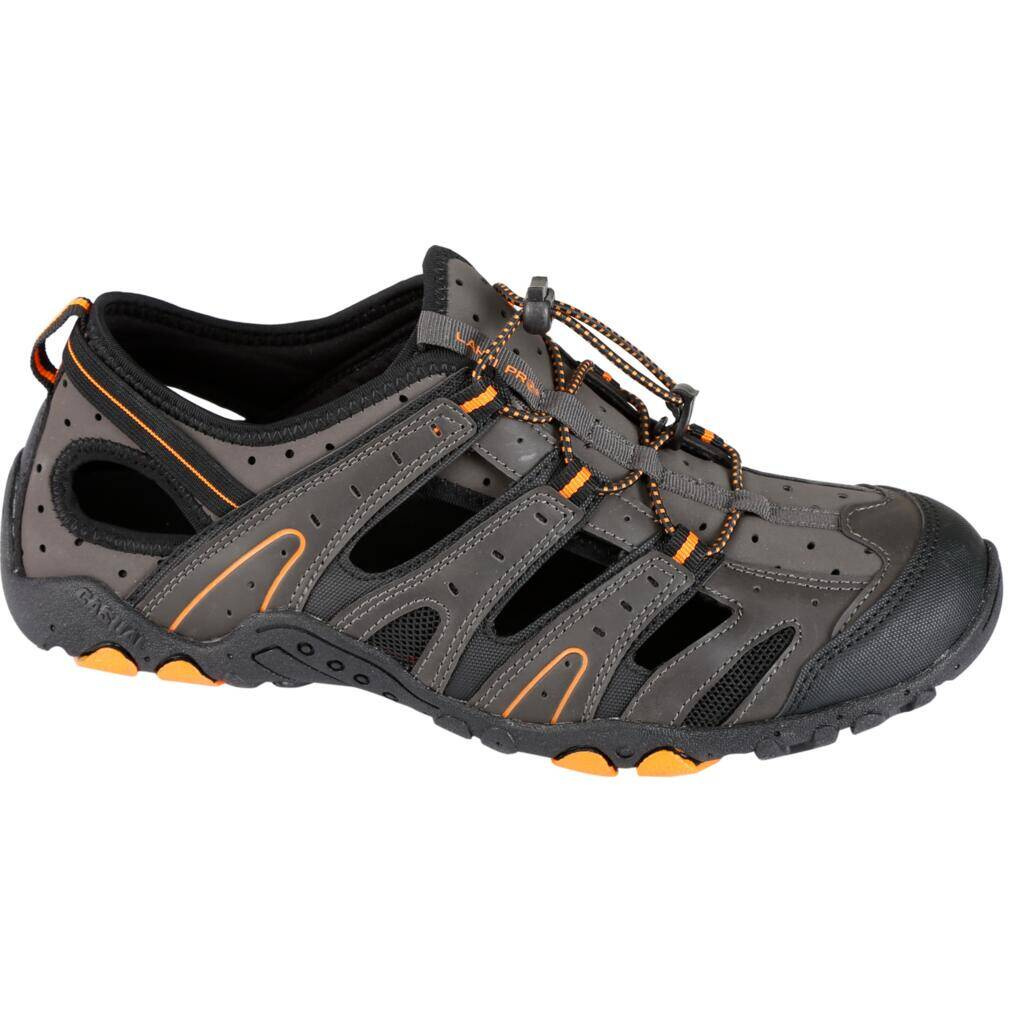 Sandały trekkingowe Lahti Pro L3061041 to lekkie obuwie, z częściowo zabudowaną i elastyczną piętą, zapewniającą idealne dopasowanie obuwia do stopy. Podszewka wykonana z dzianiny siatkowej oraz otwory zapewniają odpowiednią wentylację dla nogi użytkownika. Zastosowana podkładka tłumiąca wstrząsy dodatkowo łagodzi nacisk stopy na podłoże, zapewniając poczucie lekkości podczas noszenia. Głęboki protektor zapewnia wysoką stabilność obuwia.