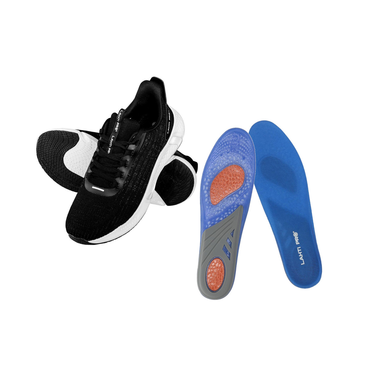Półbuty Lahti Pro z wkładkami żelowymi XX304274 w rozmiarze 44 to doskonały wybór dla osób szukających wygodnych i bezpiecznych półbutów do pracy. Wykonane z dzianiny siatkowej 3D, która zapewnia doskonałą cyrkulację powietrza, oraz podszewki z tego samego materiału, te buty są lekkie i wygodne. Podeszwa z pianki PHYLON/TPR charakteryzuje się doskonałymi właściwościami amortyzacyjnymi, jest elastyczna i odporna na ścieranie, a wstawki z tworzywa TPR w przedniej i tylnej części podeszwy zapewniają antypoślizgowość. Wkładki wykonane z TPE i dzianiny poliestrowej zawierają żel o różnym stopniu gęstości, który strefowo odciąża stopy, łagodząc nacisk, amortyzując mikrowstrząsy i stabilizując piętę. Konstrukcja wkładek zmniejsza zmęczenie stóp i podnosi komfort chodzenia, a perforacja i oddychająca warstwa dzianiny zapewniają cyrkulację powietrza. Wkładki można dociąć według pożądanego rozmiaru (41-47), co czyni je idealnymi dla osób prowadzących aktywny tryb życia oraz pracujących w pozycji stojącej.