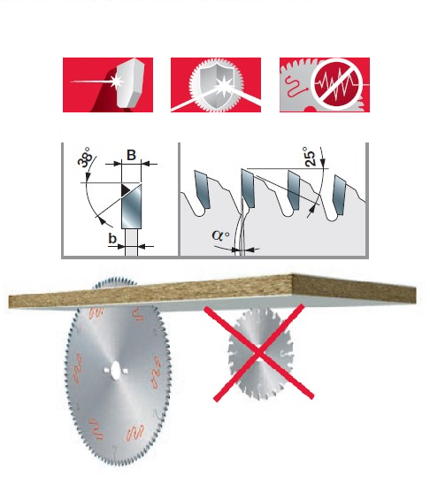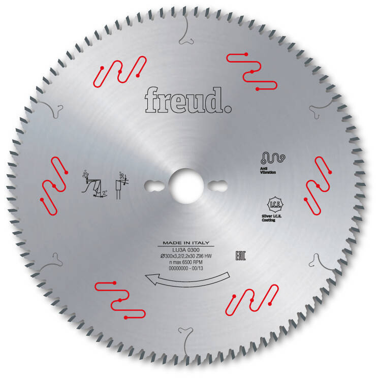 Tarcza do cięcia płyty laminowanej bez podcinacza 250x3,2/2,2x30 mm 80Z Freud LU3A 0200 to wysokiej jakości osprzęt przeznaczony do użytku z piłami formatowymi, pilarkami oraz ukośnicami. Doskonale sprawdzi się między innymi w branży meblarskiej, podczas cięcia płyt wiórowych czy MDF. Będzie też dobrym rozwiązaniem do obróbki różnych gatunków drewna, zarówno miękkiego, jak i twardego. Tarcza posiada 80 zębów o geometrii typu TCG, rozmieszczonych w układzie na przemian skośnym i cechujących się kątem natarcia o wartości 38 stopni. Takie rozwiązanie zapewnia czyste i dokładne cięcie zwłaszcza w materiałach laminowanych. Do produkcji zębów wykorzystano specjalnie zaprojektowaną mieszankę węglików TiCo Hi-Density Carbide, co przekłada się na długą żywotność narzędzia i wysoką efektywność działania.