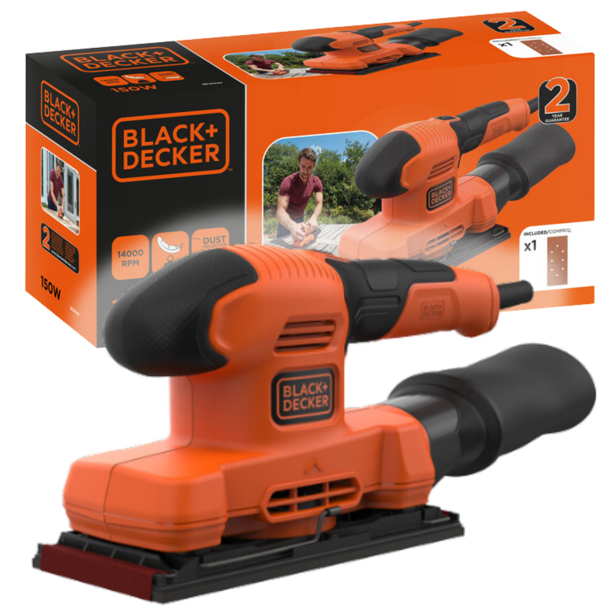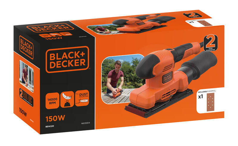 Szlifierka oscylacyjna Black Decker BEW220-QS to elektronarzędzie sieciowe przeznaczone do wykonywania wszystkich prac szlifierskich, od szlifowania i polerowania drewna oraz metali po tworzywa sztuczne i powierzchnie malowane. Narzędzie wyposażone zostało w silnik szczotkowy w mocny znamionowej 150 W i posiada ergonomiczną rękojeść przednią, umożliwiającą wygodną obsługę. Mocowanie osprzętu za pomocą metalowych zacisków zapewnia dobre trzymanie papieru ściernego podczas szlifowania.