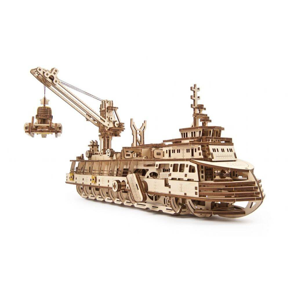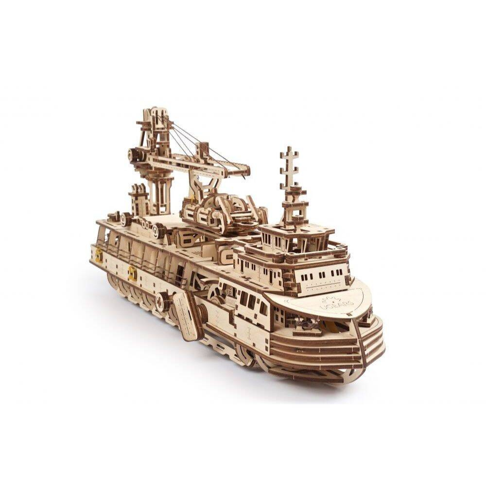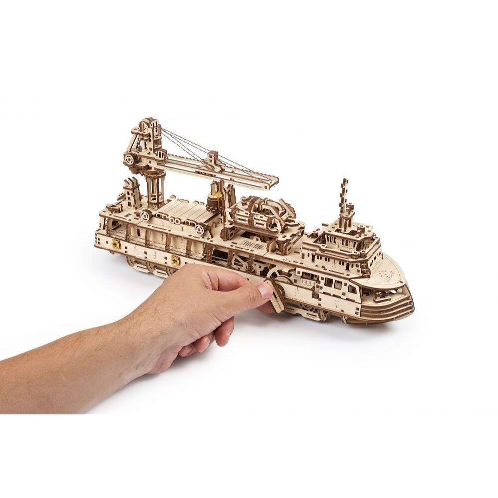 Statek badawczy UGEARS 70135 to drewniany model mechaniczny, puzzle 3D do składania.