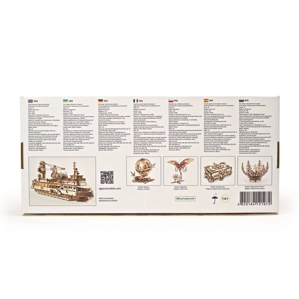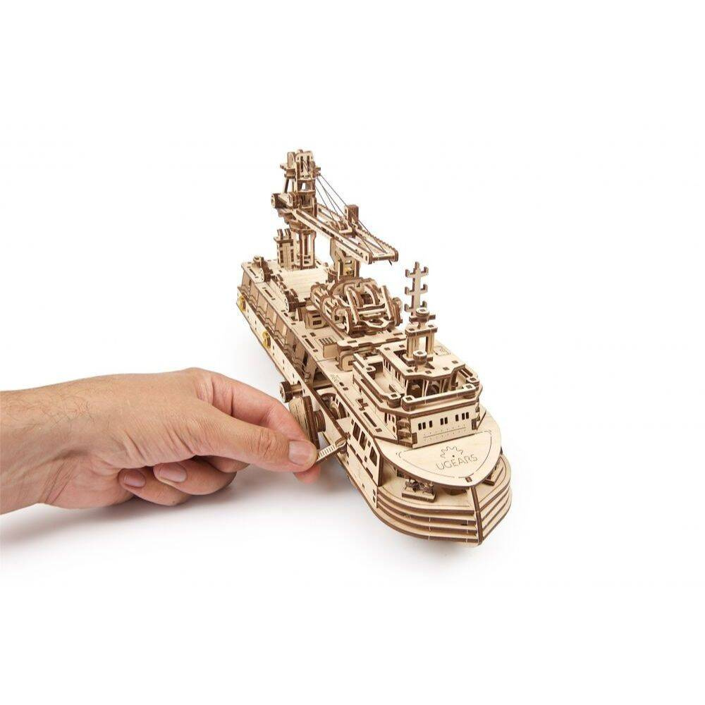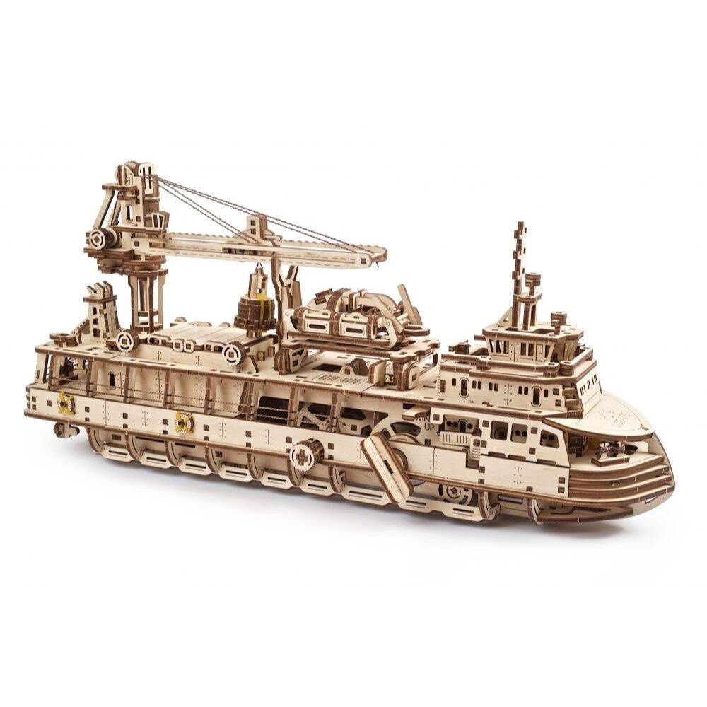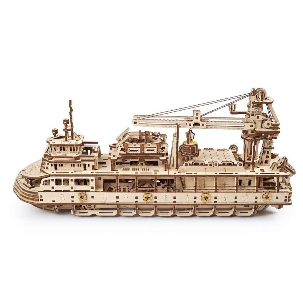 Statek badawczy UGEARS 70135 to drewniany model mechaniczny, puzzle 3D do składania.
