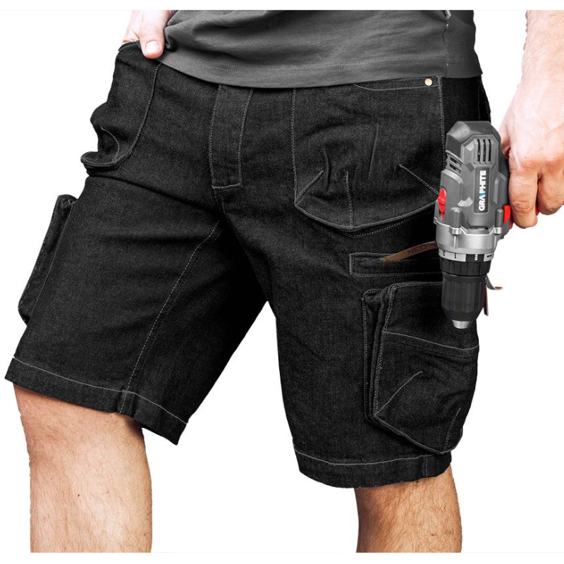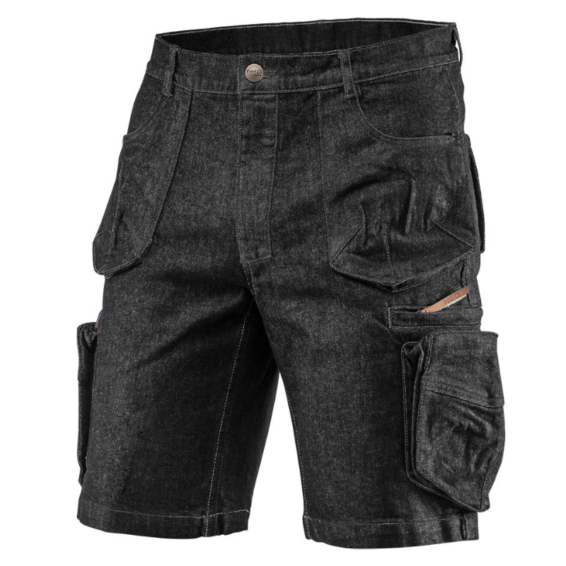 Krótkie spodenki robocze NEO Tools 81-273-XL rozm. XL to spodnie jeansowa o składzie materiałowym 98% bawełny i 2% elastanu. Spodenki charakteryzują się czarnym kolorem i zapewniają dobre dopasowanie oraz wysoki komfort użytkowania. Spodenki wyposażone zostały w 7 kieszeni, w tym jedną zapinaną na zamek oraz dwie zapinane na napy.